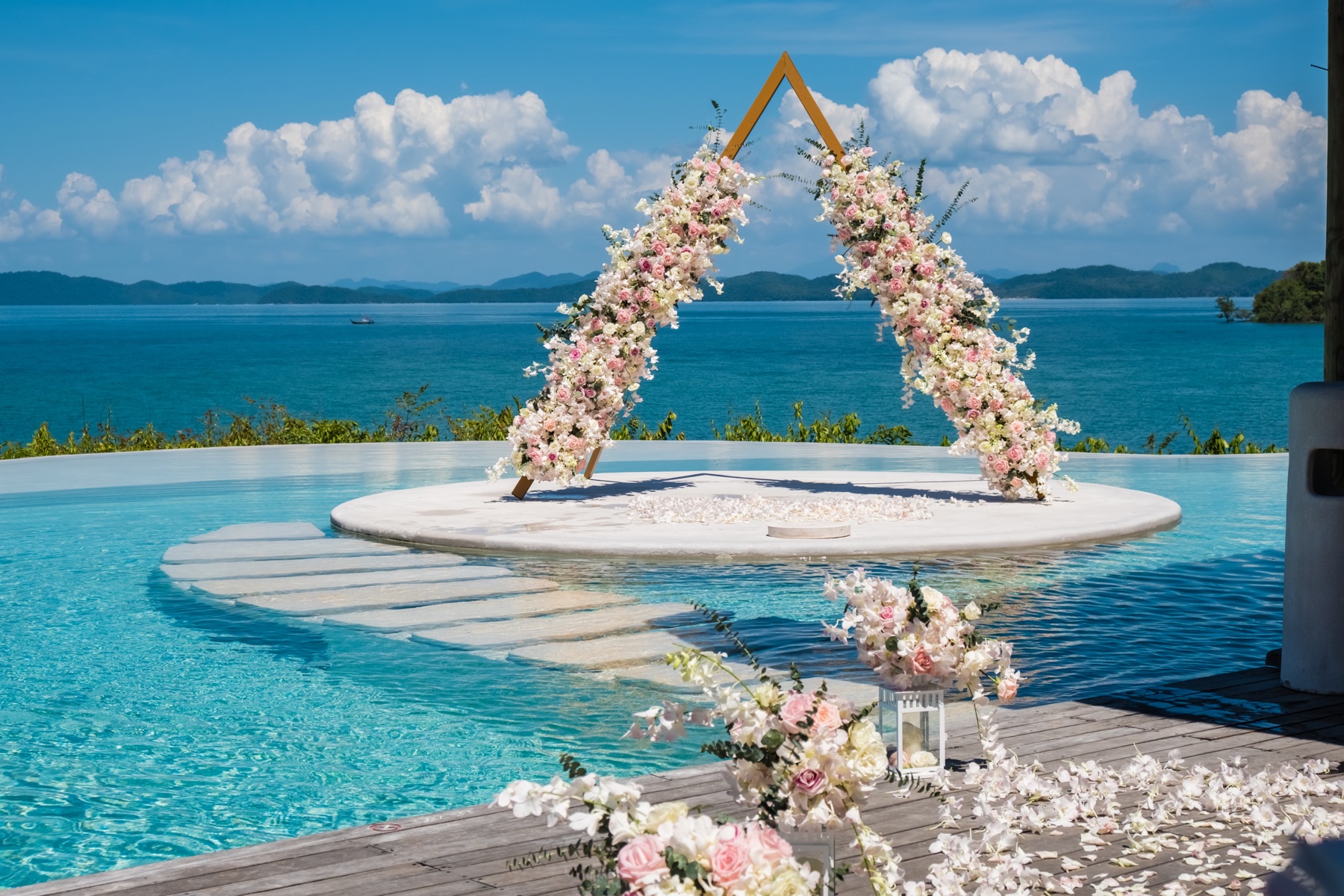 What you pay for in the Maldives is absolute isolation, water so clear the overwater villas cast shadows on the reef below, and an operational model (one island, one resort, one staff team) that is deeply personalised in the ways a standard resort is not. The luxury stock is extraordinary: Soneva Jani, Soneva Fushi, One&Only Reethi Rah, Cheval Blanc Randheli, the Four Seasons at Landaa Giraavaru. A wedding here means a guest trip of a lifetime for everyone invited; it also means the highest per-person cost of any destination in mainstream rotation.